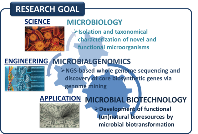 본 연구실은 미생물의 기초부터 응용까지 전반적인 연구를 수행하는 실험실로서 특히 기능성 미생물자원 확보 및 유전체 기반 유용 유전자원의 발굴 그리고 생물전환 기반의 기능성 바이오 소재 개발 관련 연구를 진행하고 있습니다.