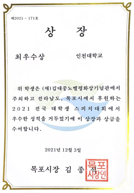 2022년도 성과 2022 대한민국 열린 토론대회 동상 수상 연합뉴스TV 캠퍼스 TV 리포트 출연 2021년도 성과 2021 전국대학생 스피치대회 최우수상 수상 연합뉴스TV 바로 보는 TV 옴부즈맨 대학생 리포트 활동